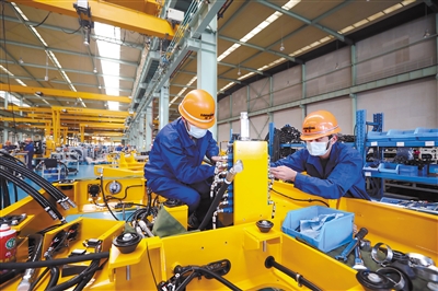 昨日,工人在龙工龙岩基地总装车间组装挖掘机。新春开工以来,龙工龙岩基地员工均已返岗。根据市场反馈,今年1-2月龙工产品销售形势喜人。预计一季度龙工龙岩基地产值、销售收入等主要经营指标继续保持较大幅度增长,实现“开门红”。