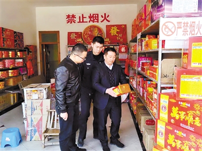 日前,连城县姑田镇政府安监站联合县应急局、姑田派出所等部门,深入辖区烟花爆竹经营户,开展专项执法检查,重点检查经营许可、消防设施、产品质量等事项,保障经营安全和消费者燃放安全。图为检查组在一家烟花爆竹经营户检查的情景。