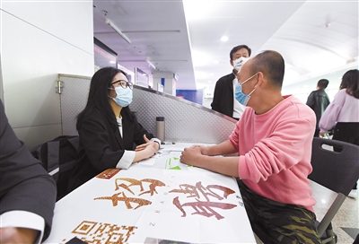 2月24日,求职人员(右)在招聘会现场与企业招聘人员交流。为进一步稳定企业生产用工,搭建企业和求职者供需平台,深圳市公共就业服务中心当日举办“2021年南粤春暖‘稳岗留工’专项行动——中小微专场招聘会”,约60家中小微企业参加,提供包括软件工程师、市场部主管、电商客服、机电工、配送员、普工等8000多个岗位。2021年南粤春暖“稳岗留工”专项活动将持续至3月31日。 新华社记者 毛思倩 摄