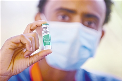3月13日,医务人员在埃塞俄比亚首都亚的斯亚贝巴展示新冠疫苗。埃塞俄比亚13日在全国范围内启动新冠疫苗接种工作。这批疫苗由世界卫生组织主导的“新冠肺炎疫苗实施计划”(COVAX)提供。 新华社 发