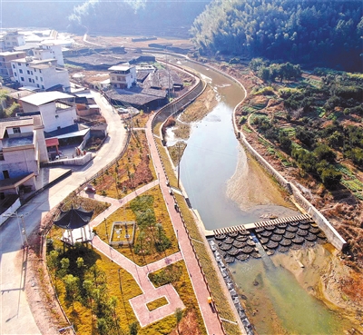 上杭县茶地镇实施调和溪安全生态水系建设项目,河道治理总长8120米,起点为翁基村,终点为下科村,项目总投资800万元,新建生态护岸1389米、巡查步道1531米、仿木栏杆1485米,新建一座亲水公园,该项目去年年底全面完工后极大改善了该镇调和溪生态环境,提升了美丽乡村景观。图为日前该项目翁基村亲水公园景观。
