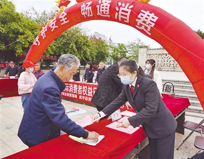 为切实增强消费者的维权意识,积极维护消费者的合法权益,3月15日,武平县人民法院组织干警前往梁野广场开展以“守护安全·畅通消费”为主题的普法宣传活动。活动现场,法官通过当场解答法律疑问、发放宣传资料等形式,向广大群众宣传相关法律知识。