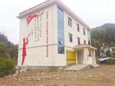 新建成的杨美村幸福院+村部外墙的“红军留款信”。