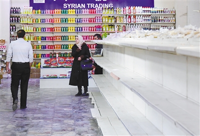3月17日,叙利亚大马士革居民在当地一家商店购物。 新华社 发