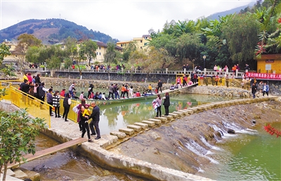 游客体验南江村网红桥 记者 傅长盛 摄