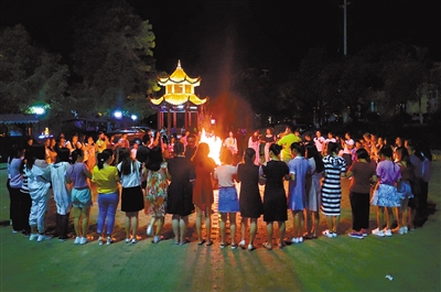 游客在南江村举行篝火晚会 记者 傅长盛 摄