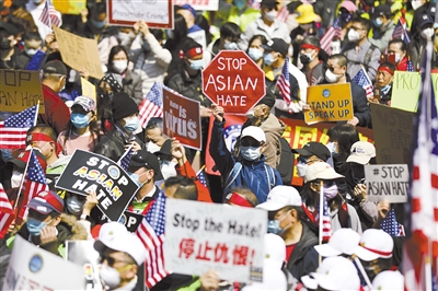 4月4日,人们在美国纽约参加游行反对亚裔仇恨。当天,大量示威者在美国纽约举行主题为“停止仇恨犯罪、反对种族歧视、捍卫亚裔权益”的大型集会游行活动。 新华社记者 王迎 摄