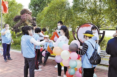 4月2日,是第十四个“世界自闭症日”,上杭县残疾人联合会携手上杭县阳光公益协会在上杭县汀江绿道景区游客服务中心举办了“畅游汀江绿道,让爱守护天使”世界孤独症日爱心助残活动,与小朋友们一起做脚踩气球、击鼓传花等游戏。同时,呼吁社会各界关注自闭症儿童,帮助孩子们融入社会。最后志愿者为15名孩子发放了精美的小礼品、零食。 通讯员 周继章 蓝桥辉 摄
