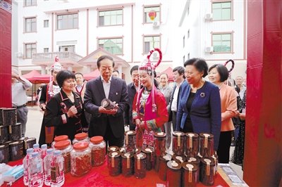 出席活动的有关领导和嘉宾了解畲乡特色产品。