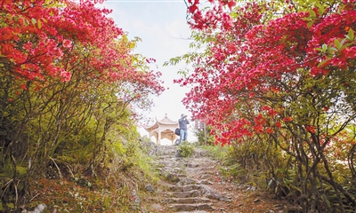 近日,在浙江省庆元县黄田镇龙头山,一片片盛开的杜鹃花簇拥在山头,艳红似火,绵延不绝,形成了一片红艳艳的花海。(人民网)