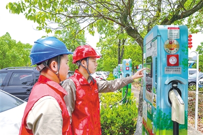 ←1日,“五一”小长假第一天,龙岩供电公司古田供电所员工在古田会议会址景区开展保供电特巡,对景区箱变、电动汽车充电站等设施进行巡视,保障小长假期间景区供电稳定。