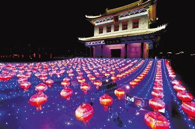 5月3日晚,游客在即墨古城游览。“五一”假期,山东即墨古城的夜晚流光溢彩,当地推出夜经济系列主题活动,吸引游人到此感受古城的魅力。