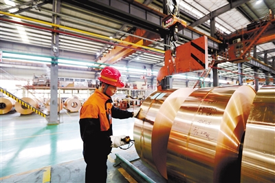 福建紫金铜业有限公司经营范围包括生产和开发铜基合金板带材以及开发、生产空调、冰箱制冷用的高性能内螺纹铜管和其他铜及铜合金管材;废旧金属回收、加工、销售等。 记者 郭亦斌 摄