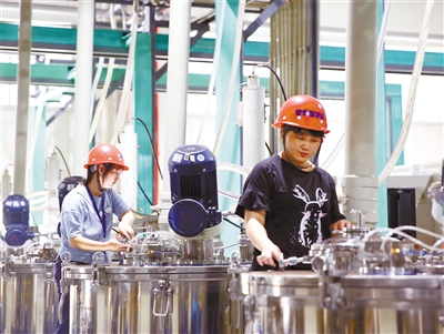 由吉利集团、杉杉能源、紫金矿业三家上市公司共同投资达65亿元的重大项目——上杭蛟洋循环经济工业园区“常青新能源三元前驱体生产”项目,目前首期已经投产,建成后可实现每年15万吨锂电池资源化利用和10万吨三元前驱体生产的产能,实现年销售收入130亿元。图为近日生产场面。