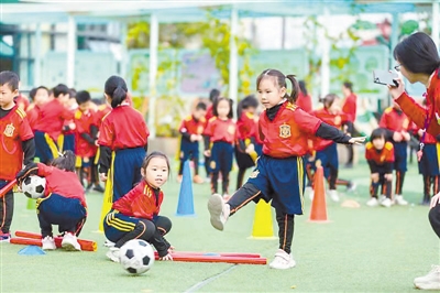 龙岩实验幼儿园紫金山分园的孩子们在快乐游戏。