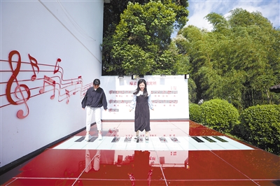 地上钢琴踏出红色旋律。