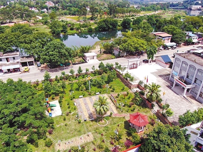 上杭县旧县镇水东村利用村落位于旧县河旁、依山傍水的生态优势,开展美丽乡村建设,完成危房整治、裸房粉刷、道路硬化、路灯等项目,并投入资金完成2000平方米公园建设,配齐儿童游乐设施、体育健身器材,在公园旁建成村部综合大楼,一个旧县河和205国道旁集古榕树、新村部和运动场的乡村公园成为全村群众休闲、健身、学习的好去处。图为日前该村公园鸟瞰画面。 记者 傅长盛 摄