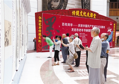 5月25日,由市委老干部局举办的“百年风华——庆祝中国共产党成立100周年”全市老年书画摄影作品展在市博物馆开幕。此次书画摄影展共展出290幅作品,其中书法125幅,绘画65幅,摄影100幅。老同志用文艺创作形式回顾中国共产党团结带领人民不懈奋斗的光辉历程,描绘闽西革命老区巨大变化。 记者 王沐 通讯员 何东明 廖荣凌 摄