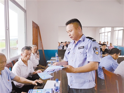 为进一步扩大反诈宣传覆盖面,提高广大群众防骗意识,5月23日,长汀县公安局河田派出所借鉴厦门市局“五宣”做法,组织民辅警深入辖区积极开展反诈防骗宣传工作,确保基础宣防人人过关,反诈防骗知识深入民心,此次宣传共发放宣传单100余份。图为辅警向群众散发反诈宣传材料时的情景。 通讯员 张晨 摄