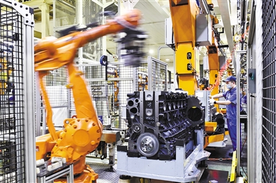 4月22日,在位于山东潍坊的潍柴集团总装车间,工人在流水线上装配发动机。国家统计局5月27日发布的数据显示,今年前4个月,全国规模以上工业企业实现利润25943.5亿元,同比增长1.06倍,延续了去年下半年以来较快增长态势;与2019年同期相比,利润增长49.6%,两年平均增长22.3%。 新华社记者 郭绪雷 摄