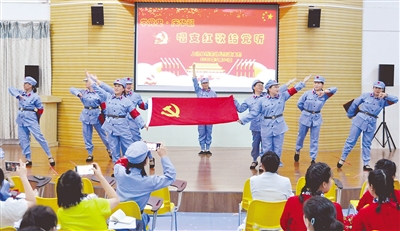 5月30日,上杭县城南幼儿园党支部开展“唱支红歌给党听”红歌展示活动。今年以来,城南幼儿园持续加强校园党建、党史教育工作,开设多门党史课程,开展幼儿党史故事演讲、户外红军体验等活动,进一步弘扬红色文化,传承红色基因。 记者 郭亦斌 蓝明丰 摄