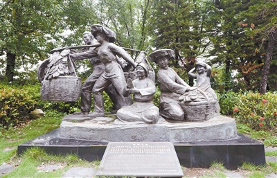 雕像“积极支前”,生动反映了当年闽西苏区人民尽一切可能支持革命的场景。 记者 郭亦斌 摄