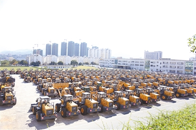 1993年,由李新炎独资创办的乡镇企业代表——福建龙工集团有限公司,经过多年的发展,如今已成为中国龙工控股公司,2005年率中国工程机械行业之先在香港联交所主板上市,名列全球工程机械50强、中国机械工业核心竞争力100强,是中国工程机械行业领军企业之一。目前,公司在福建、上海、江西等基地拥有20家全资子公司,产品覆盖装载机、挖掘机、压路机、叉车等四大类500多种型号的整机产品,以及驱动桥等具有自主知识产权的核心零部件产品。 记者 郭亦斌 摄