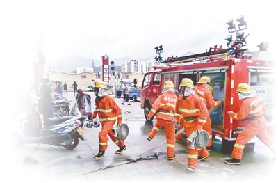 集团驻北城专职消防站人员正在组织救援。