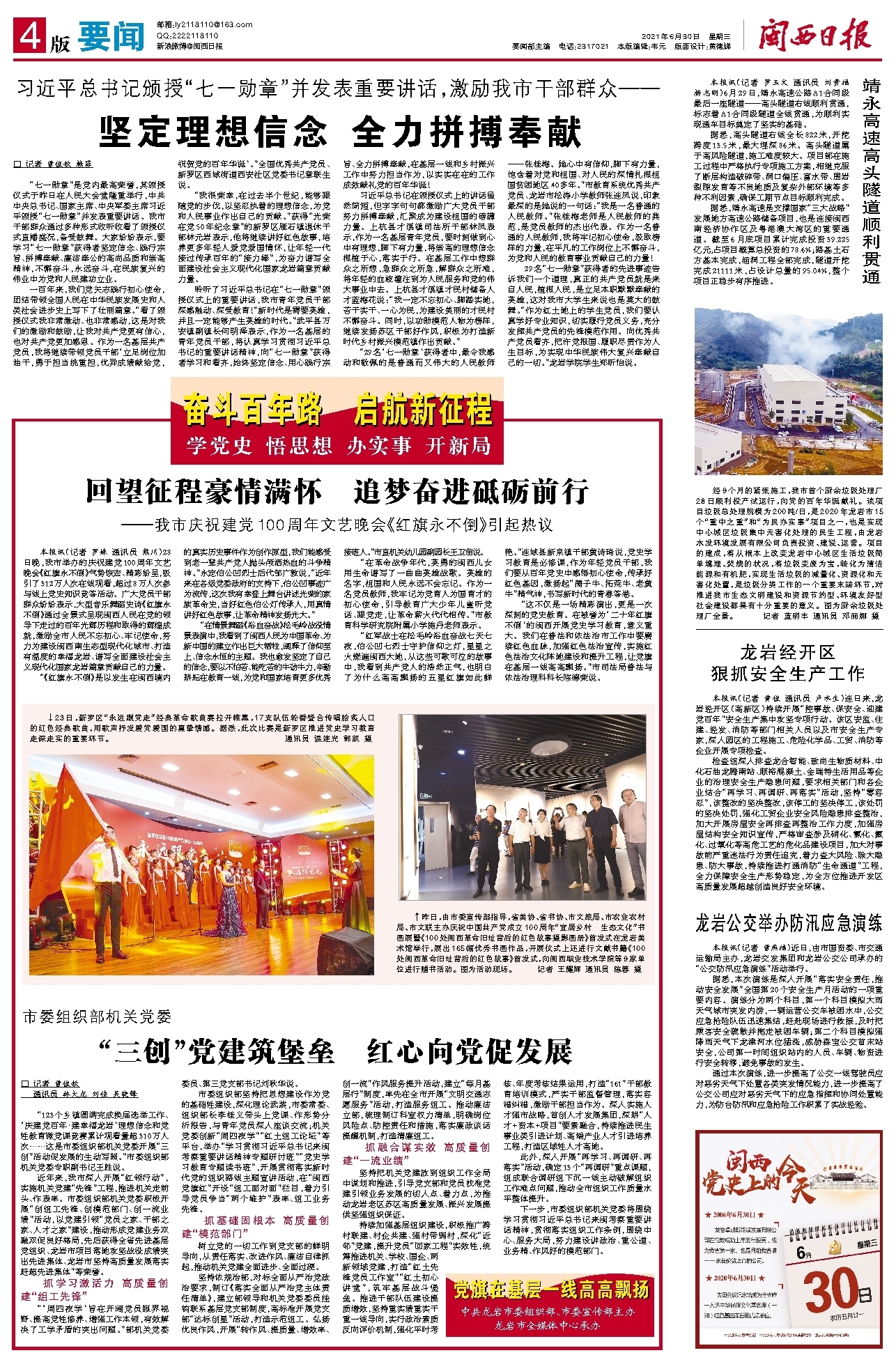 “红军战士在松毛岭浴血奋战七天七夜,伯公凹七烈士守护信仰之灯,星星之火燃遍闽西大地,从这些可歌可泣的故事中,我看到共产党人的浩然正气,也明白了为什么高高飘扬的五星红旗如此鲜艳。”连城县新泉镇干部黄诗琦说,党史学习教育是必修课,作为年轻党员干部,我们要从百年党史中感悟初心使命,传承好红色基因,激扬起“孺子牛、拓荒牛、老黄牛”精气神,书写新时代的青春答卷。