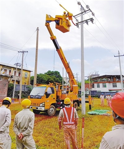 近日,连城县总工会和连城供电公司工会联合举办“绝缘手套作业法带负荷更换中相隔离开关”职业技能大赛, 经过决赛,城区供电服务中心、隔川供电所、新泉供电所分别获得团体前三名。图为技能大赛现场。 通讯员 周宗胜 童小燕 摄