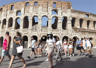 6月28日,游客参观意大利罗马斗兽场。意大利28日首次实现全国范围全部划定为新冠疫情低风险地区,民众在户外可以不戴口罩。 新华社记者 程婷婷 摄