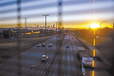 6月28日,汽车行驶在南非约翰内斯堡的马路上。南非总统拉马福萨27日宣布,从28日起将“封城”等级提升至仅次于最高级的第四级,以应对第三波新冠疫情。这是该国近一个月来第三次上调“封城”等级。 新华社发 阿里·格雷夫 摄