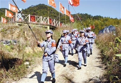 古田红军小镇吸引全国各地学员前来开展情景教学。