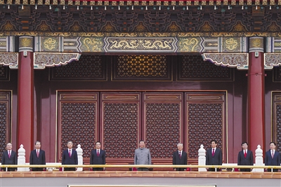 习近平、李克强、栗战书、汪洋、王沪宁、赵乐际、韩正、王岐山、胡锦涛等出席大会。 新华社记者 殷博古 摄