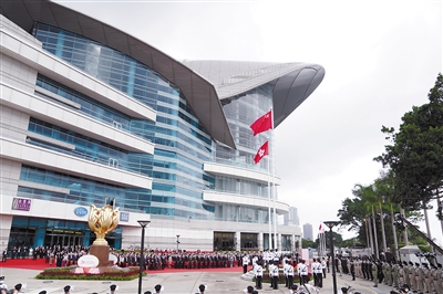 七月一日,香港特区政府在金紫荆广场举行升旗仪式,庆祝香港回归祖国二十四周年。 新华社记者 吕小炜 摄