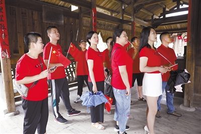 昨日,长汀县营背社区党员群众参观红色文化。 记者 傅长盛 摄