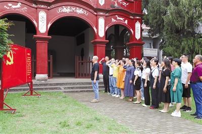 昨日,党员在才溪光荣亭前重温入党誓词。