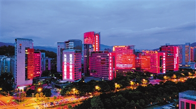 昨晚,中心城区商务板块闪耀着各种庆祝中国共产党成立100周年宣传标语的“灯光秀”。