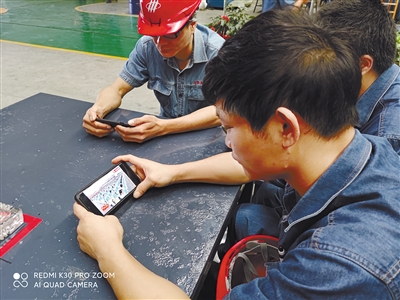 昨日,龙马环卫工人利用工作间息时间用手机收看大会直播。