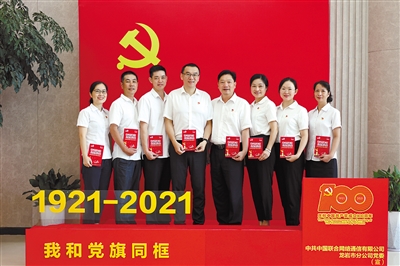 7月1日上午,中国联通龙岩市分公司全体员工在单位集中收看大会直播,并参加“我与党旗同框”、参观龙岩老区苏区成就展等系列庆祝活动。 记者 林阿玲 通讯员 陈琳芳 摄