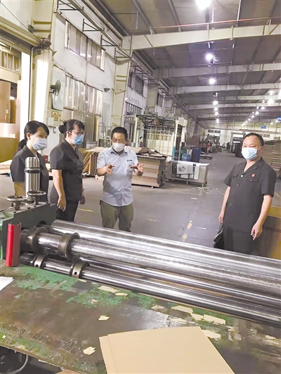 为优化法治营商环境,助力企业优质发展,日前,连城县人民法院法官走访某民营企业,通过实地查看生产车间和与该企业座谈,充分了解企业法律需求,并提供法律咨询,对民法典中与企业有密切联系的相关内容进行宣讲。图为法官在车间了解企业需求时的情景。 通讯员 陈立烽 杨映辉 摄