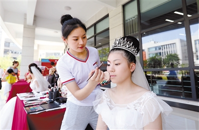 龙岩技师学院学生展现美妆技能。 记者 郭亦斌 摄