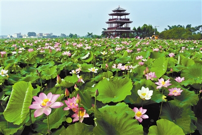 “接天莲叶无穷碧,映日荷花别样红”的AAAA级荷美覃塘景区。