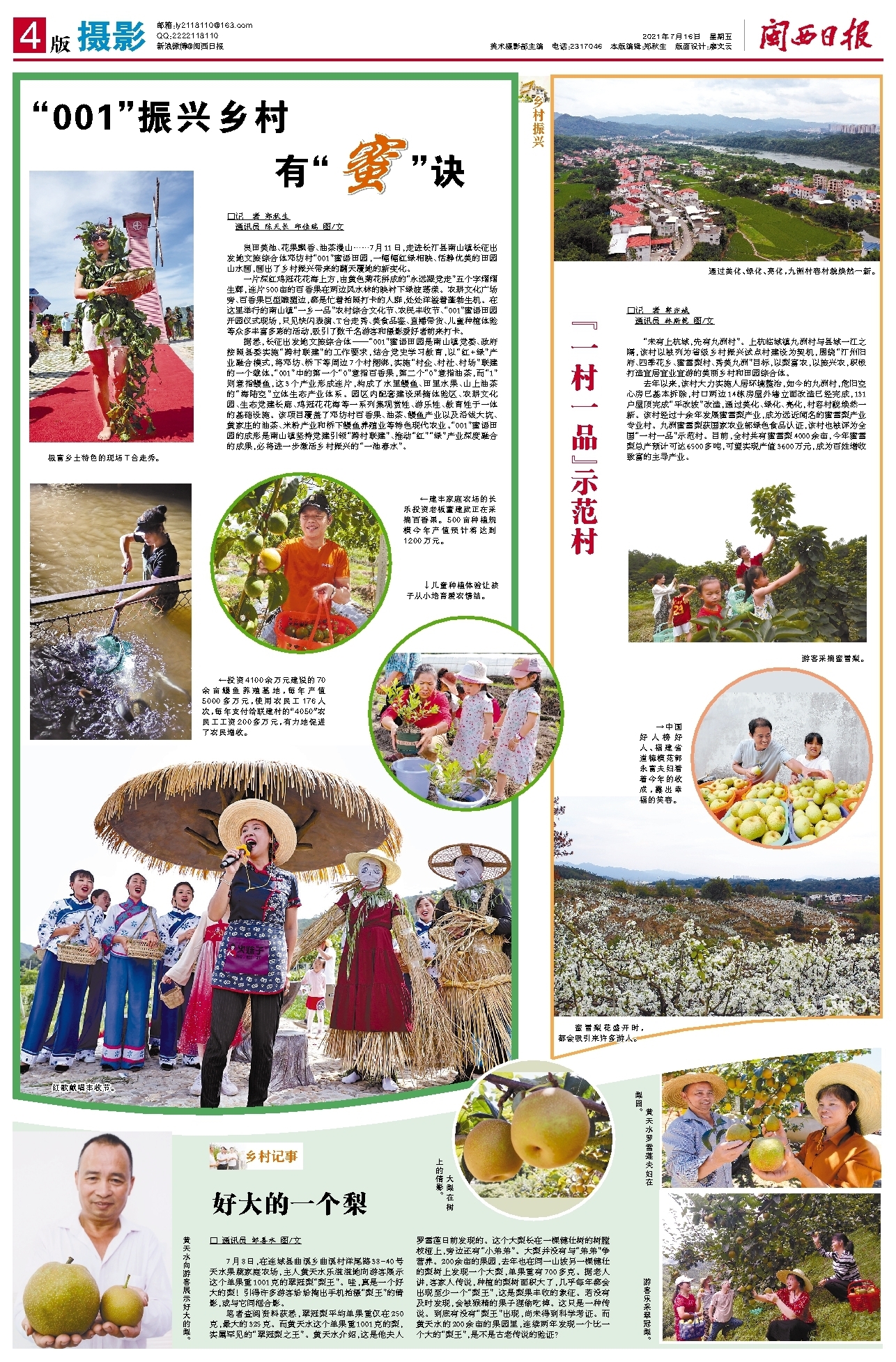 良田美池、花果飘香、油茶漫山……7月11日,走进长汀县南山镇长征出发地文旅综合体邓坊村“001”蜜语田园,一幅幅红绿相映、恬静优美的田园山水画,画出了乡村振兴带来的翻天覆地的新变化。