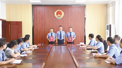 7月12日,连城县人民检察院举行“从检三十年”荣誉章颁发仪式暨学习座谈会,为从事检察工作满30周年的2名检察干警颁发检察荣誉章。从事检察工作满30年的干警畅谈了从检经历,进一步激励干部职工继承优良传统,增强使命感、归属感,为检察事业的发展添砖加瓦。 通讯员 江丽琼 摄