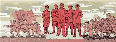《红旗跃过汀江 直下龙岩上杭》(壁画) 范秉琪 陈茂诚 李俊勇