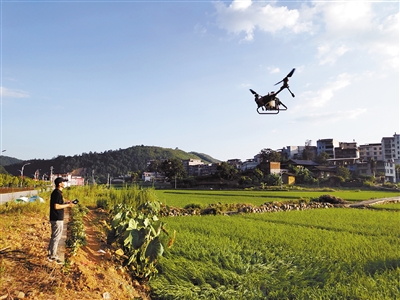 “过去稻田施肥喷药全部靠人工,夏天晒日头时间长,很辛苦。现在用无人机喷洒,仅仅一上午就相当于15个人的作业面积和工作量。”种植户沈盛钦种植了20亩水稻,往年这时候是他最忙碌的时候,他得背着药箱下稻田喷施农药,可今年,他却悠闲地在地头做起了指挥员。他告诉记者,比起传统的喷施农药,无人机作业不仅省时省力,效果还更好,很受欢迎。