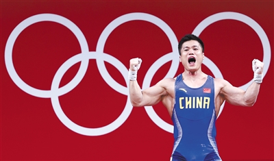 7月31日,吕小军夺冠后庆祝。当日,在东京奥运会举重男子81公斤级决赛中,中国选手吕小军夺冠。