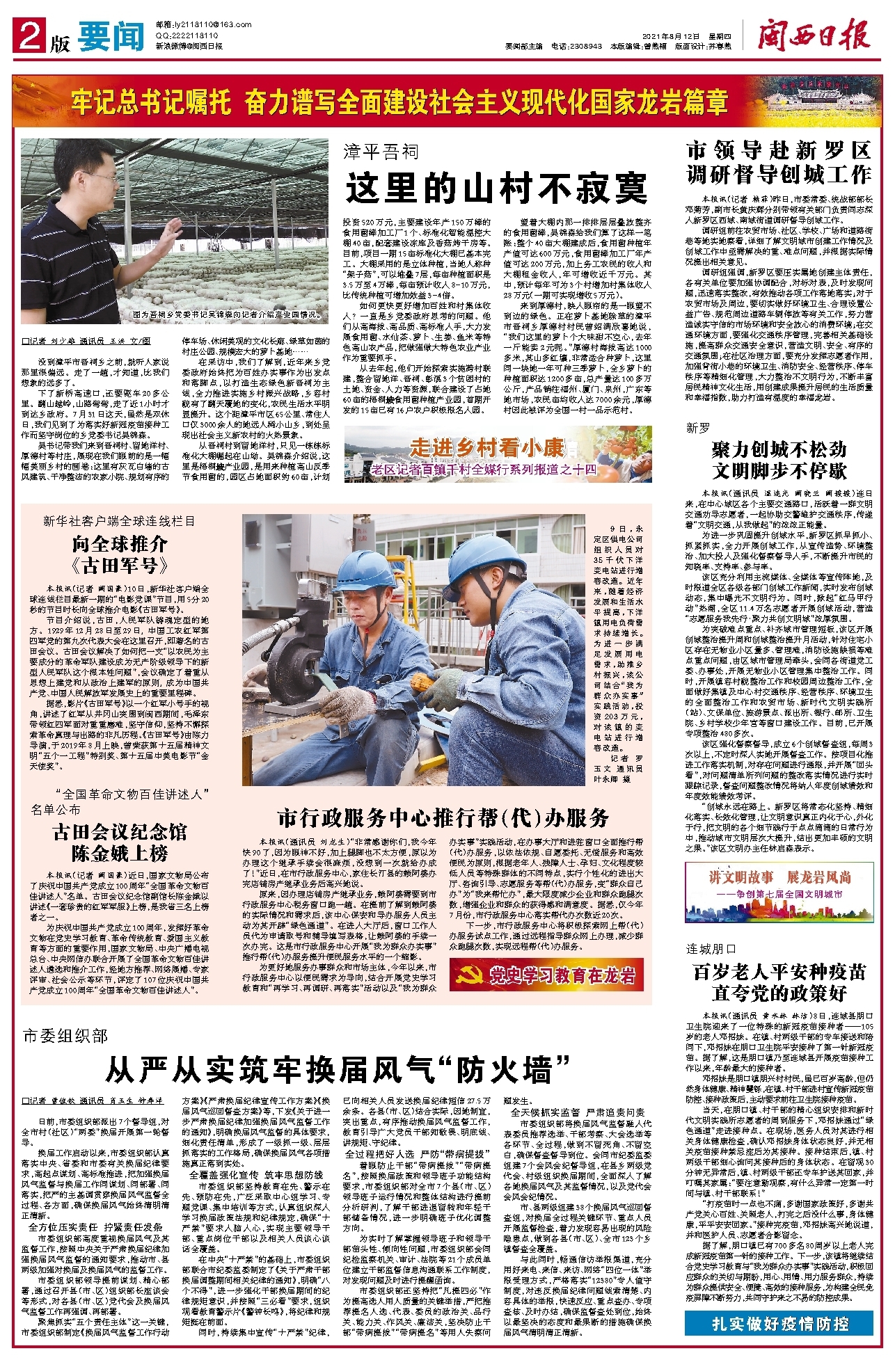 下了新桥高速口,还要驱车20多公里。翻山越岭,山路弯弯,走了近1小时才到达乡政府。7月31日这天,虽然是双休日,我们见到了为落实好新冠疫苗接种工作而坚守岗位的乡党委书记吴锦森。