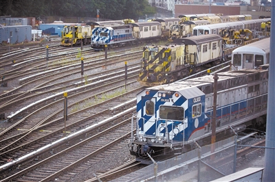 这是8月10日在美国纽约拍摄的一处列车停车场。美国国会参议院10日通过总额约1万亿美元的跨党派基础设施投资法案,随后该法案将被送交国会众议院审议,但其批准前景尚不明朗。 新华社 发